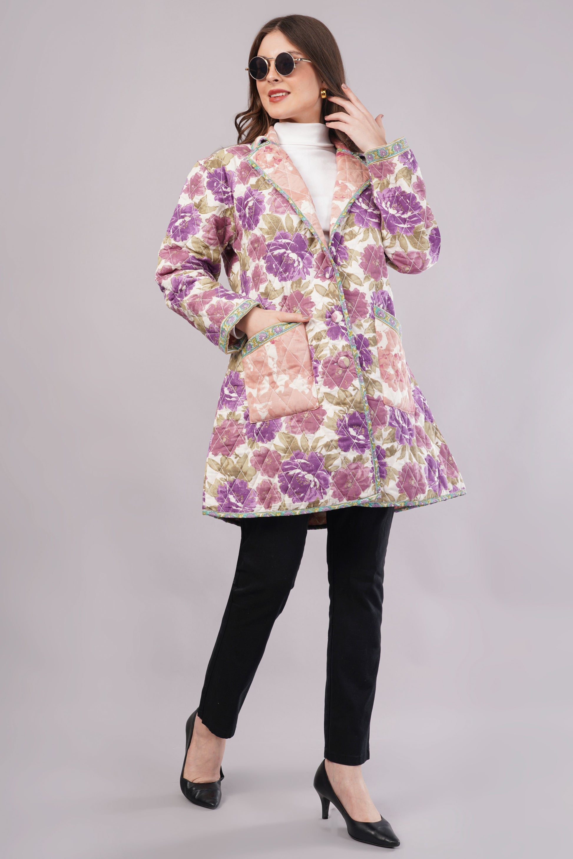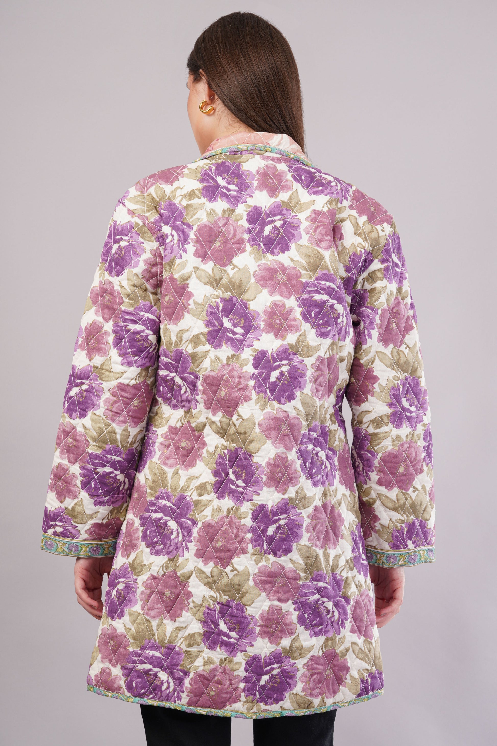 Purple & Pink Floral Quilted Reversible Jacket - Cotton Hand-Stitched Block Print Coat